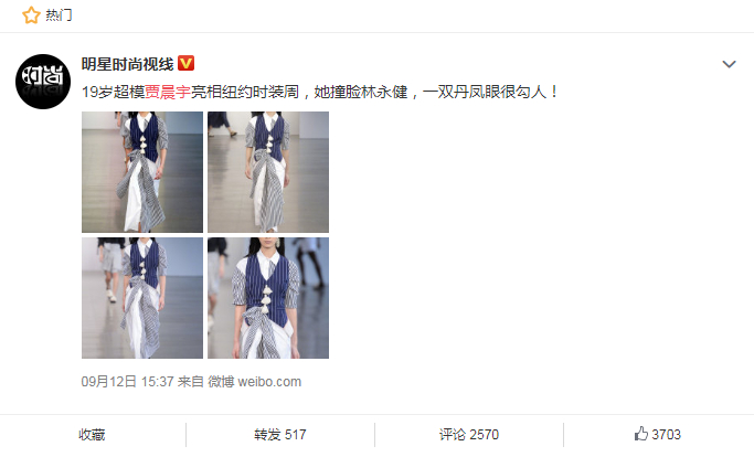 最近两年,中国超模脸越来越频繁地来到国际时装周,也越来越频繁被踩。在这次纽约时装周,这个19岁,叫做贾晨宇的中国女模出镜率也不低。