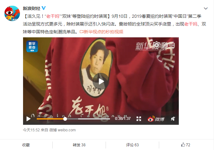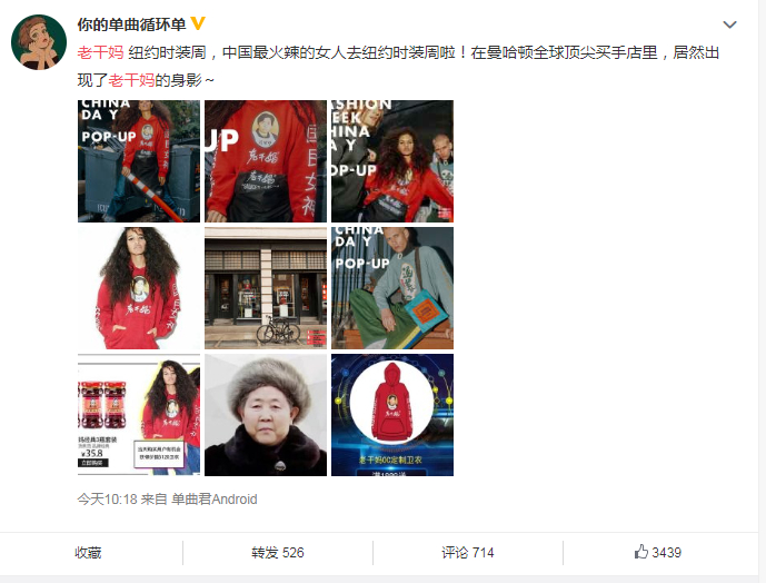 在这次纽约时装周落幕间隙,除了中国女模撞脸林永健外,另一件“举国狂欢”的,就是号称全中国最火辣的女人,辣酱老干妈!出现在了曼哈顿的一家买手店里。