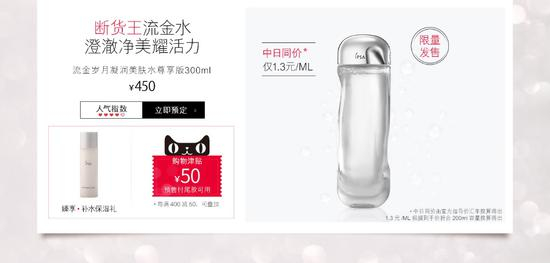 除了贴心的价格优惠,赠礼同样非常吸引人,不仅赠送30ml的流金水以及40ml的卸妆油中样,预售前800名还可以获得50ml的按摩卸妆霜!