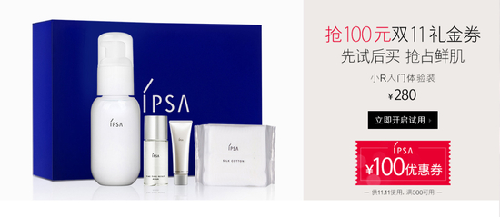 套装内包含60ml美肌液+30ml流金水+25g洁面泡沫以及20p化妆棉,IPSA家的主力护肤品你都能体验到,而价格只要280元,双十一还加送100元优惠券!可用于双11当天支付满500使用,相当于8折优惠啦!