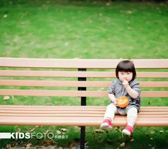 77在公园吃妈妈准备好的橘子(构图垂直及水平对称,将人物放在某一区间)