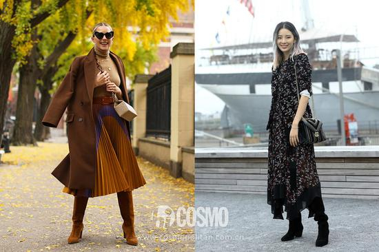 首先超好搭,麂皮长靴配长裙或大衣有种波西米亚风即视感,让裹成粽子的冬天也能有浪漫气息。