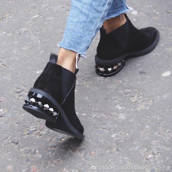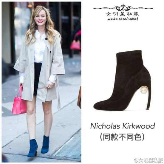 不过要说优雅,都比不上这双鞋跟微微弯曲的麂皮靴了。虽然Dior也有弯跟鞋,但和镶嵌珍珠的Nicholas kirkwood 比较起来,可没那么有韵味。
