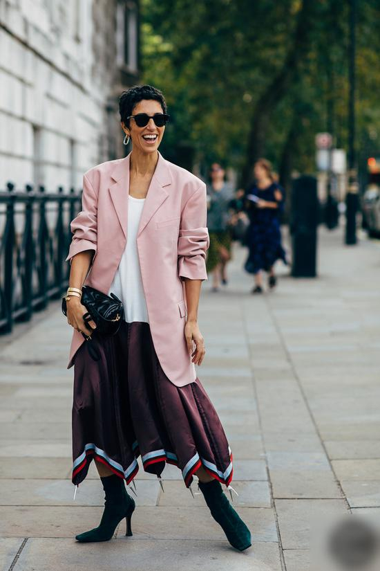 另外一种搭配方法是今年火起来的:长靴配宽松的西服裤、直筒裤,中性气场爆棚!