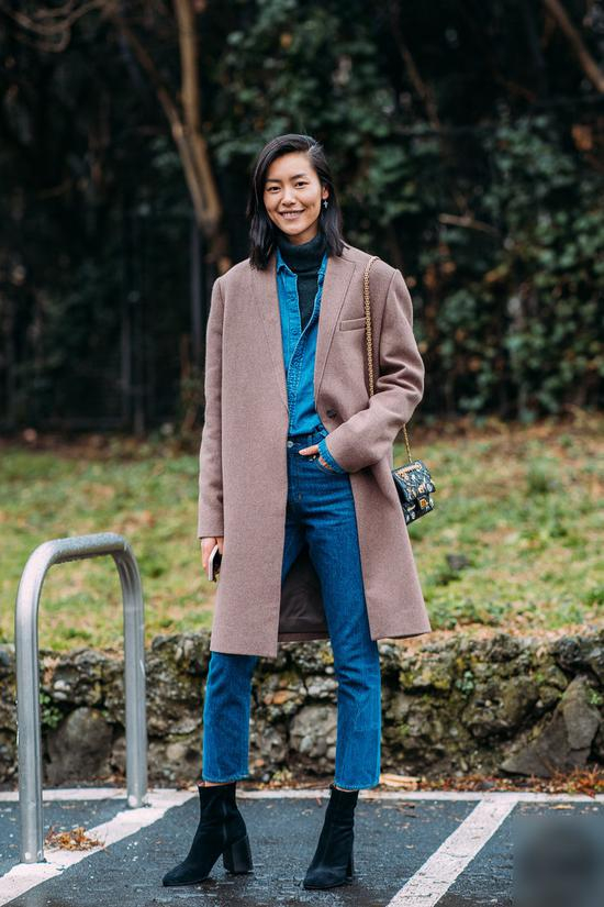特别是用棕色麂皮靴和牛仔裤搭配在一起,有一种不做作的清爽感,很适合20+少女参考。