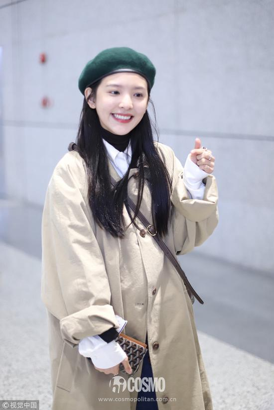 小仙女章若楠现身机场的这套LOOK可把COCO萌化了。她头戴绿色贝雷帽,少女范儿十足。身穿长款卡其色外套内搭纯白衬衫和黑色高领衫,文艺范儿十足。