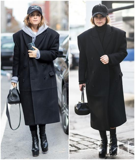 其实大家在日常穿搭中,搭配黑色大衣多半心照不宣选择黑色棒球帽,跟她们学准没错!