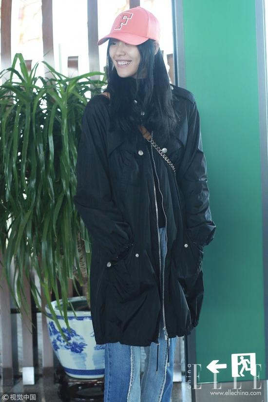 混搭穿出新鲜感 刘雯娜扎只爱大衣+棒球帽