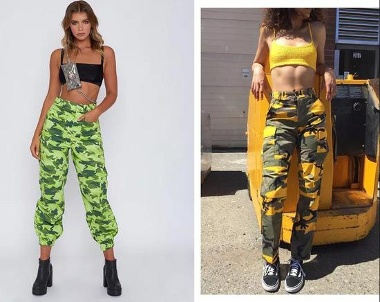 与纯色款相比,迷彩工装裤辨识度相当高,走到哪都能凹造型,原来被我们嫌弃的“军训裤”没想到如今成为酷女孩们的最爱。