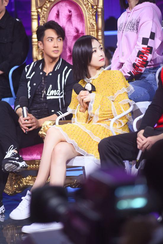 宋茜一袭黄色Philosophy di Lorenzo Serafini蛋糕裙,甜美复古。鞠婧祎以一件黑色星星透视蛋糕袖纱衣搭配白色高腰短裤,青春可爱。