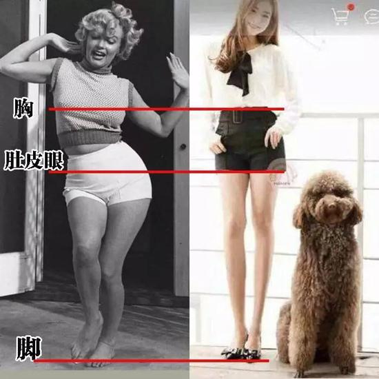 我们现在喜欢网红大长腿,看下这跟梦露的比例差哦