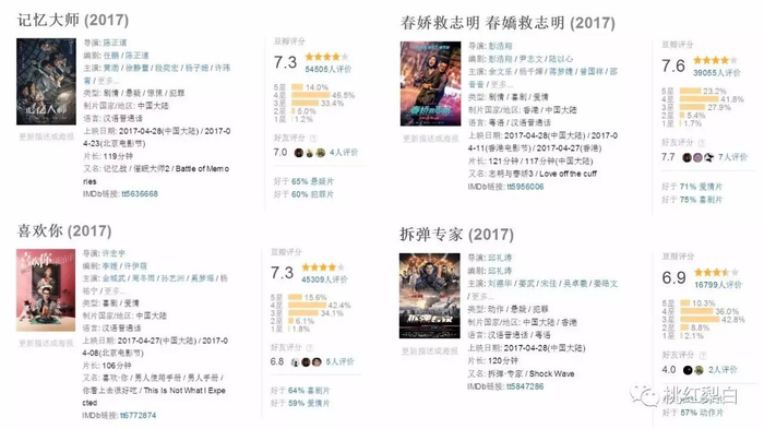 《记忆大师》、《喜欢你》、《春娇救志明》、《拆弹专家》四部国产电影,看评分,都水准在线。