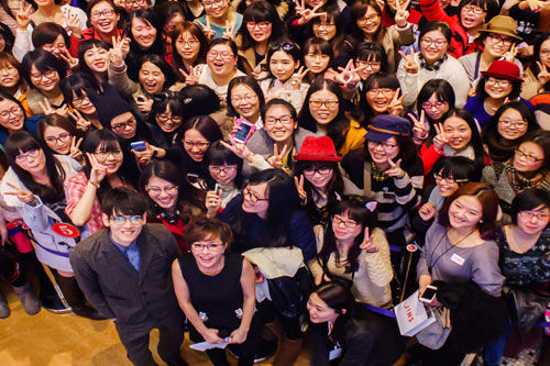 经过严格的甄选评比,最终金戌丽、徐怡薇和竺金苇三位荣获“搭配女神奖”,茉茉和潘虹羽荣获“爱镜女神奖”,获得JINS准备的惊喜奖品,还有古川雄辉亲自为其搭配眼镜造型的福利,令人艳羡不已。除此之外,现场最引人注意的莫过于这300名时尚JINS女孩的集体大合影,一如两年前的上百位眼镜萌妹一样,在这个老地方再次将JINS的可爱、时尚展露无遗。