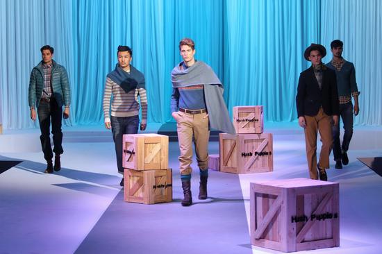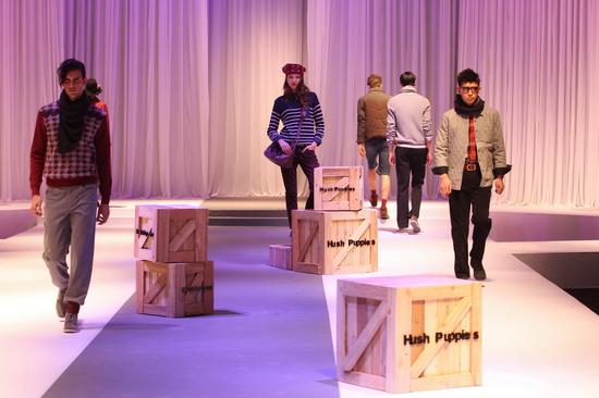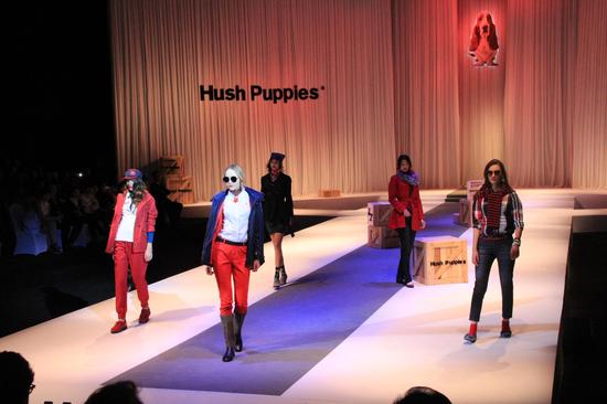 Hush Puppies(暇步士)2014秋冬新品发布发布会开场就用精彩的舞蹈和杂技表演吸引了所有人的眼球,随后T台上靓丽帅气的模特们伴着动感又富有异域风情的音乐,为大家上演了一场精彩绝伦的视觉盛宴,同时穿插在走秀期间的创意新颖的跑酷表演也让人们感受到了Hush Puppies(暇步士)寓休闲娱乐于生活的品牌理念。