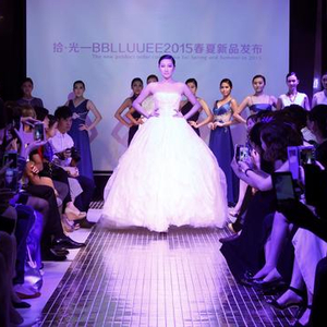2015春夏BBLLUUEE系列品牌新品:高级定制礼服品牌BBLLUUEE GoldBBLLUUEE2015春夏新品发布会现场,非洲鼓全场互动,禅舞时装瑜伽创新演出,以及皮影艺术展览、时装音乐剧剧服展览;BBLLUUEE从多个角度呈现了粉蓝衣橱时尚集团的文化艺术创新,让到场嘉宾体验了一场时装与艺术的跨界派对。
