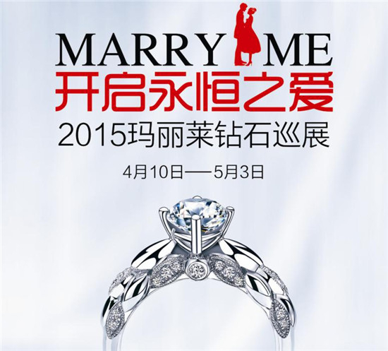 导语:执子之手的动情时刻,一枚璀璨的钻戒最能将幸福凝聚。星光熠熠的钻石,恰似星空滑下的魔咒,守护每份独一无二的爱情。4月10日,逾百颗珍藏级克拉美钻闪耀绽放,为期23天的玛丽莱2015年钻石巡展拉开帷幕,万款经典钻饰,开启永恒之爱。