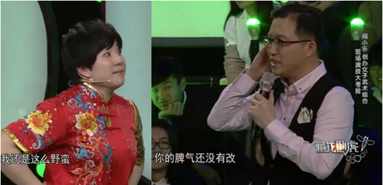 “关键要野蛮!一定要野蛮!不野蛮就不到位!”还没开演,导师就千叮咛万嘱咐。小乐果然不负众望,一上场就气势凶猛。当沈东军问“这么多年你还好吗?”小乐却吼道:“我还是这么野蛮!当时你就不因为这个和我分手的吗?”