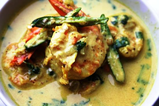 原料:虾、姜黄粉、糖、盐、茴香籽、胡椒、香菜籽、洋葱、蒜、姜、椰浆、绿辣椒、香菜。