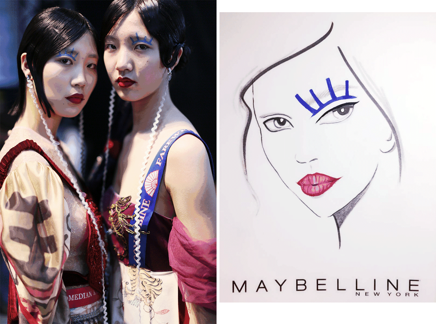 密扇现代髦儿戏班里的戏子个个冷艳又妩媚,美宝莲纽约此次为密扇设计的单边眼蓝色图腾暗示着强烈的戏剧冲突和和穿越时空的怪诞。