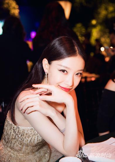 倪妮身穿抹胸金色亮片礼服出席晚宴