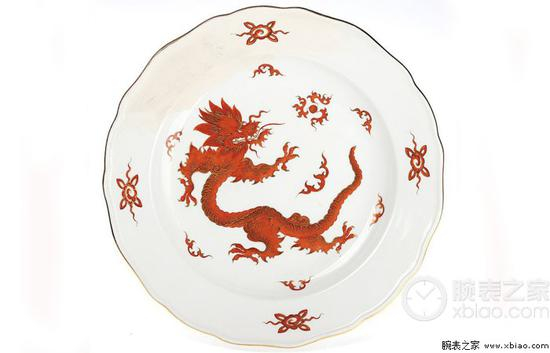 这次的九龙壁套表所采用的龙纹饰虽是取“九龙壁”为灵感,但这可并不是为了一味迎合当今颇为流行的中国风而做的蹩脚的模仿。龙纹饰其实是梅森最为擅长的图案,中国的明龙(Ming Dragon)是梅森的早期纹饰之一,是梅森瓷创立者奥古斯特二世最喜爱的瓷器绘饰之一,这一图案的设计也是他亲自下令完成的。