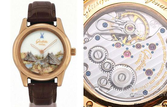 中国作为瓷器的故乡,我们对瓷器总是有一些情意结的。印象中比较深的,是格拉苏蒂原创2006年曾经与梅森联手的套表,为了庆祝德累斯顿设城800周年之际,用8枚表描绘了德累斯顿名胜。除了梅森的瓷表盘外,表壳使用了早已停产的细纹圈Classic外壳,内里则是手动上链的Cal.49机芯,内外皆美呢。