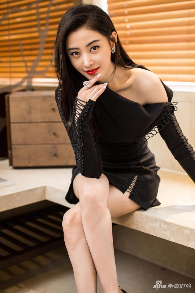 明星爱大牌:张天爱黑色斜肩绑带裙小秀迷人锁骨