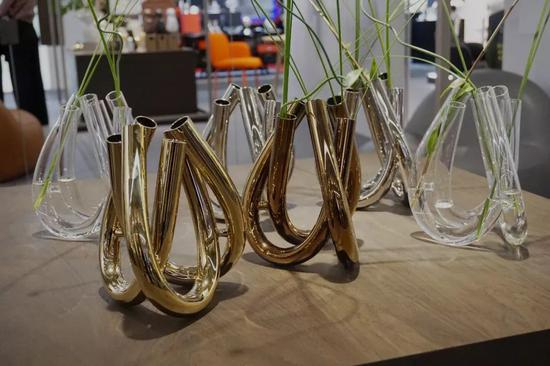 范思哲的餐具风格延续了品牌奢华的调性。此次展会,范思哲也带来了往年的限定套装,极尽奢华。