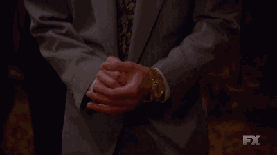 《美国犯罪故事》第二季中,男主只有戴上大金劳,才敢牛气哄哄的参加上流活动