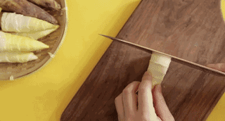 Step1:处理春笋。先沿着笋体竖切一刀。
