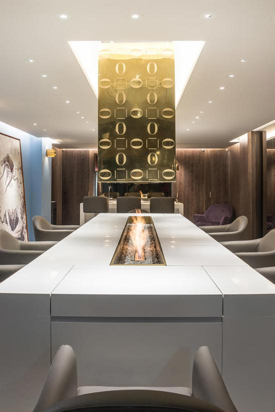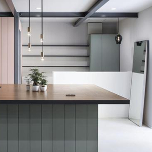 设计团队的目标是将空间简化,通过简化家具的设计来解放产生障碍的空间,让空间连贯性更好。细长的木板条被运用到天花板和墙体的设计上。这些平面的重叠创造出了一个人们可以自由通过的空间外形。人工照明也被运用到这个空间外形中,沿着连续的木条形状向长面和宽面方向照射。