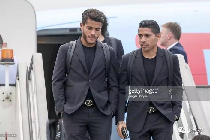 墨西哥队的Dress Code大概是麻麻黑,黑西装内搭黑T恤,为了凸显品位,还戴了2000块的杰尼亚腰带,有点抢镜。