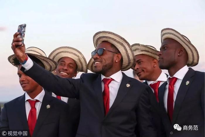 比如戴着巴拿马草帽的巴拿马国家队~穿西装配草帽的招数已经很清奇了,再加上红红火火的领带,有种冲出屏幕的喜感。