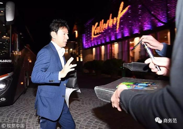 韩国队这次出征世界杯,范主看到的照片不是很多,主教练申台龙这身条纹西装看起来还算有型,BV手拿包亮了。