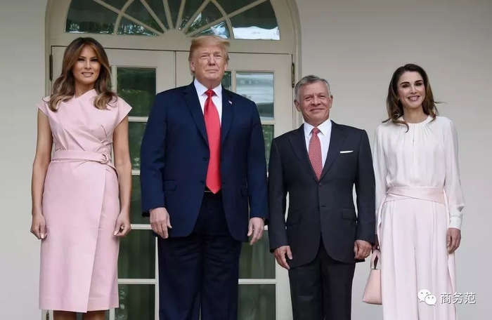 近日,约旦国王携王后和川普两口子会面。两人人不约而同穿起了柔和的浅粉色,少了一点“火力全开”的PK,多了一点“相亲相爱”的友好,站在一起时还是很赏心悦目的。