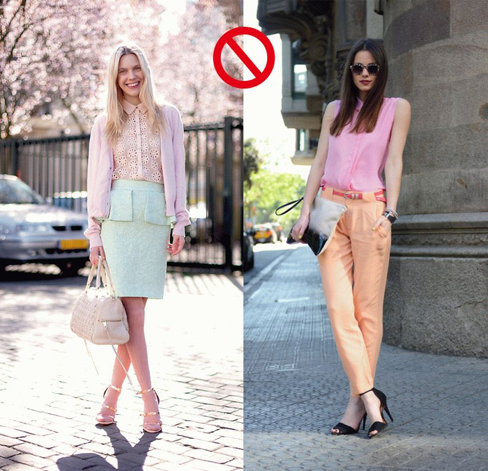 各种蜡笔色因为色调含白,不会特别扎眼,搭上一个高饱和度的配件,吸睛指数可以一下被提高!而且这一招还超级简单,几乎不会出错。