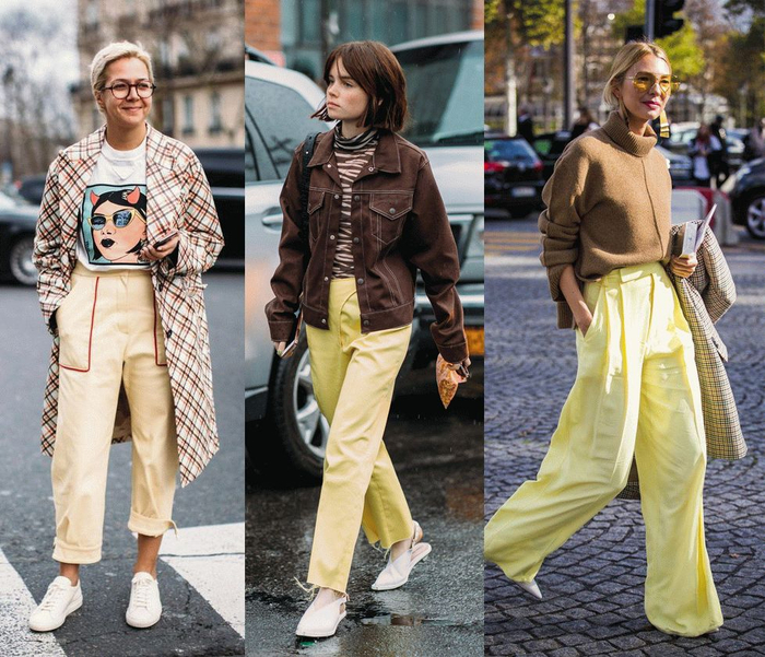 小鸡黄也可以做成裤装,但是,对于裤装真的很挑版型。包括上面的薄荷绿其实也是一样,那种紧身的铅笔裤还是不要拿出来穿了好吗!现在早就不是Gee Gee Gee的年代了!