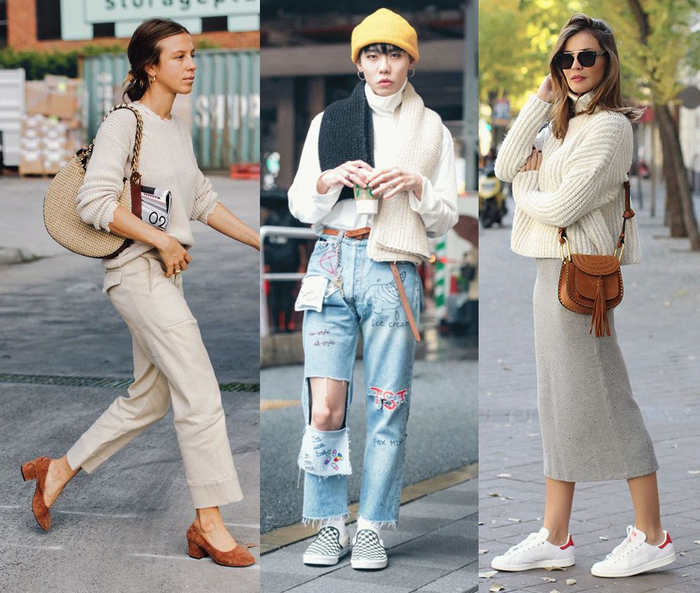 还有带着温婉气质的奶油色针织衫,都是入秋后值得入手的单品。