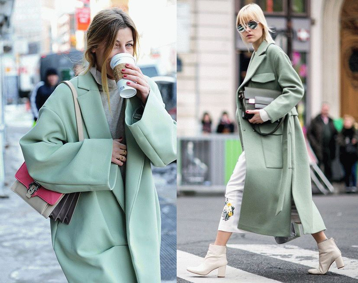 但是这样的仙气颜色又很适合出现在毛呢大衣上。尤其是具有廓形感的大衣,搭配上柔软的材质,会很能穿出大牌感。