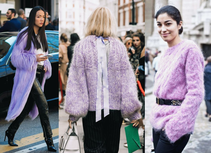 因此,如果你接下来还想要挑战一下这样的香芋紫,大可以从针织单品入手。反正接下来的秋天,你总要用到针织衫~~
