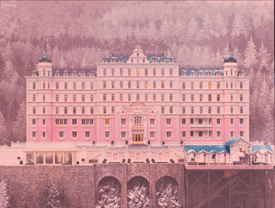 而这种混合了浓郁,但又无限柔和的色彩,在电影中也时常会被拿出来运用。像《布达佩斯大饭店》中被粉色环绕的建筑: