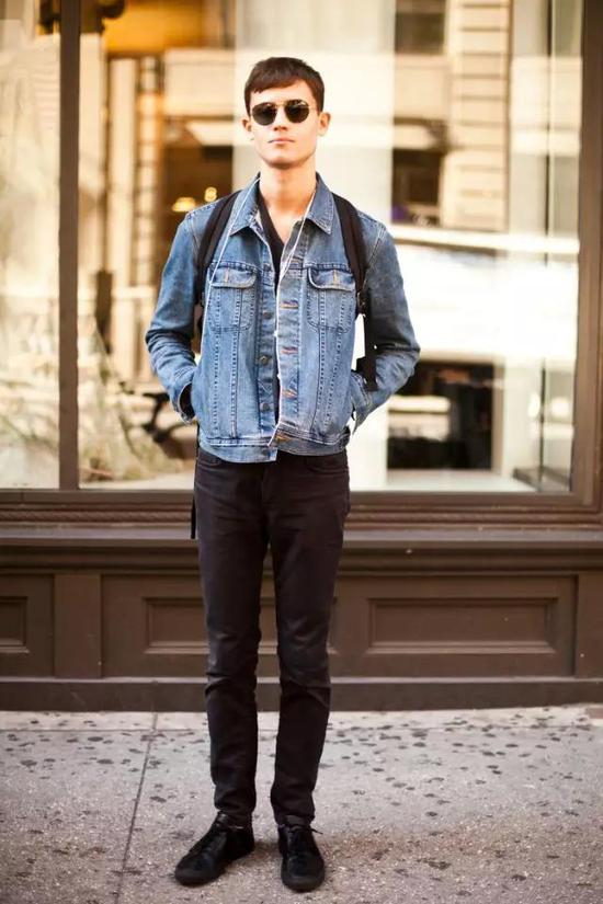 但凡有过牛仔夹克搭配牛仔裤经验的男生,都知道这两件单品的搭配不是件容易的事儿(套装除外)。