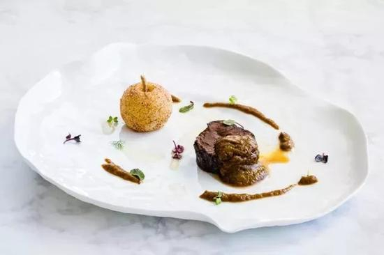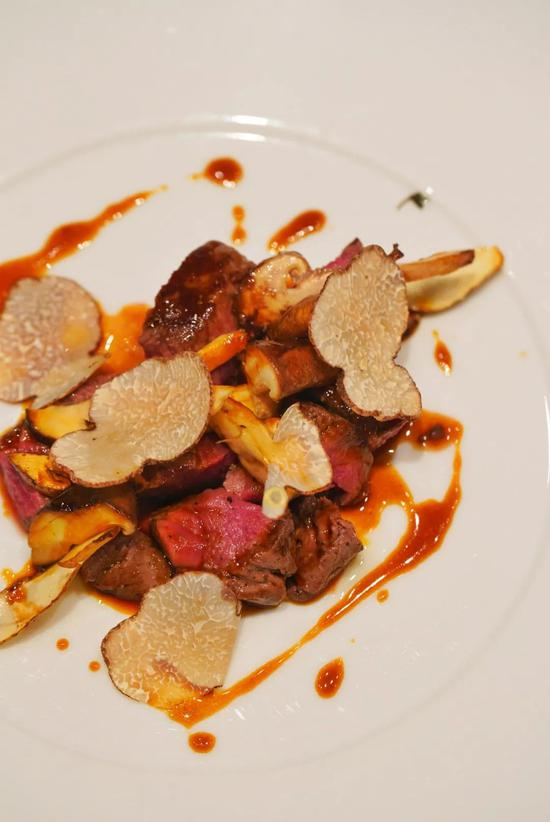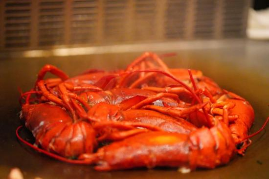 铁板澳洲和牛,搭配正当季的食材松茸与松露,红酒汁调味。可感受到来自澳洲优质和牛的浓郁滋味——随着咀嚼,油汁在口中四溢,牛油与野蕈产生的复合香气,在口中久留不散;作为另一套料理主菜的铁板龙虾泥,在料理技法上仍旧保持传统。但采用美式酱汁调味的“波龙”则彰显了西式料理的清新与原味。