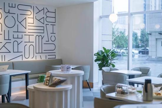 依旧是不同以往的店面风格,依然是品质惊人的咖啡和令人称赞简餐。在长楹天街一层,以多个咖啡杯为灵感的几何造型构架,又在店内幻化成立体的“古希腊神庙石柱”撑起了全部空间。