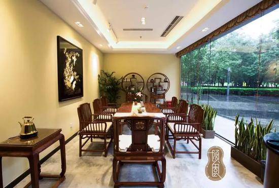 开在新城国际的颐园餐厅,虽然是主打的是清真菜,却颠覆传统清真餐厅的印象,用墙面上精致的苏绣艺术品、元亨利红木家具、简约而低调奢华 Normcore 风格、因四季而变换的插花,打造出一个雅致的氛围。