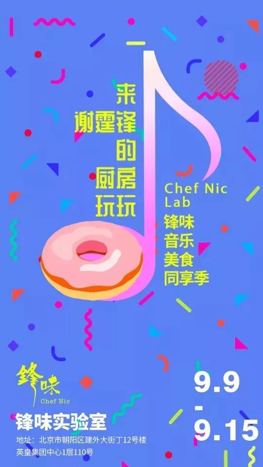 9月9日至15日,谢霆锋在北京的厨房、位于英皇集团中心一楼的“锋味实验室”,将开放为期一周的“锋味音乐美食展”。