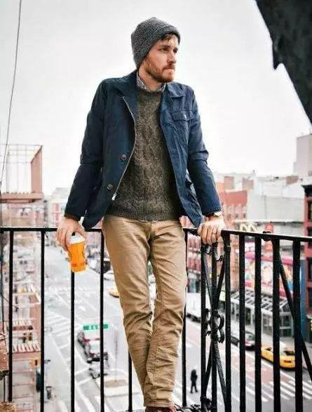 款式3:男式针织衫+卡其休闲裤
