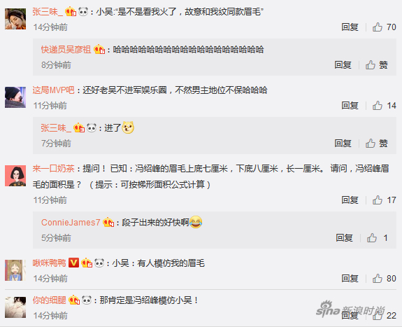 但很多网友抓错重点,被冯绍峰结婚照里的眉毛所吸引,甚至笑称冯绍峰的眉毛是向发际线男孩小吴偷师的。