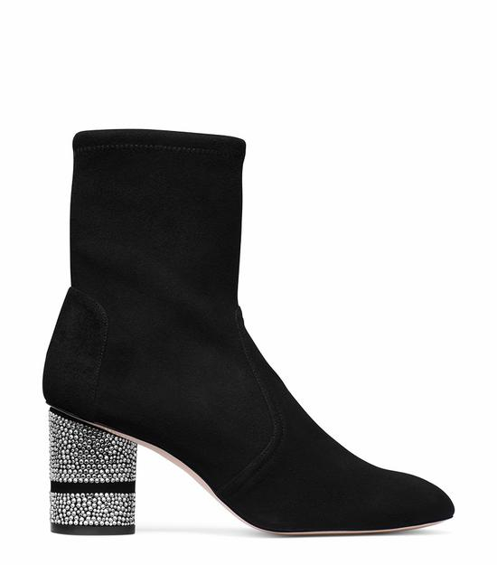 黑色麂皮水晶跟短靴