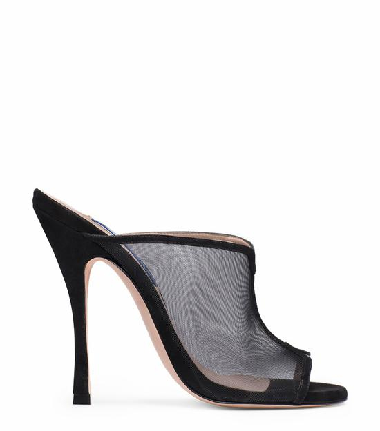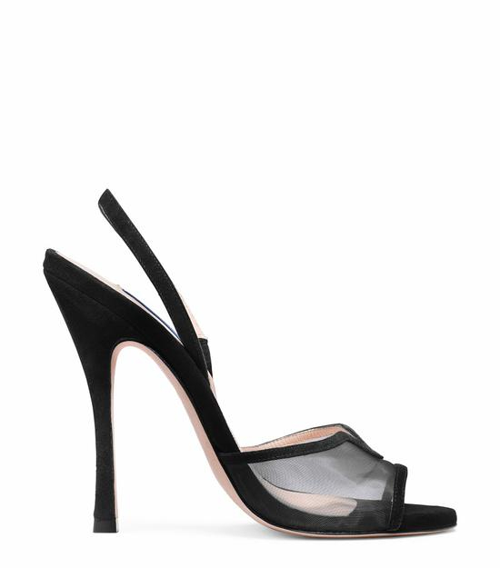 黑色麂皮网纱高跟鞋